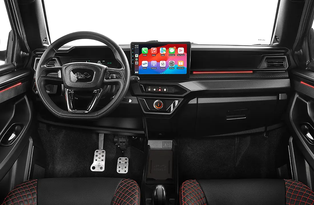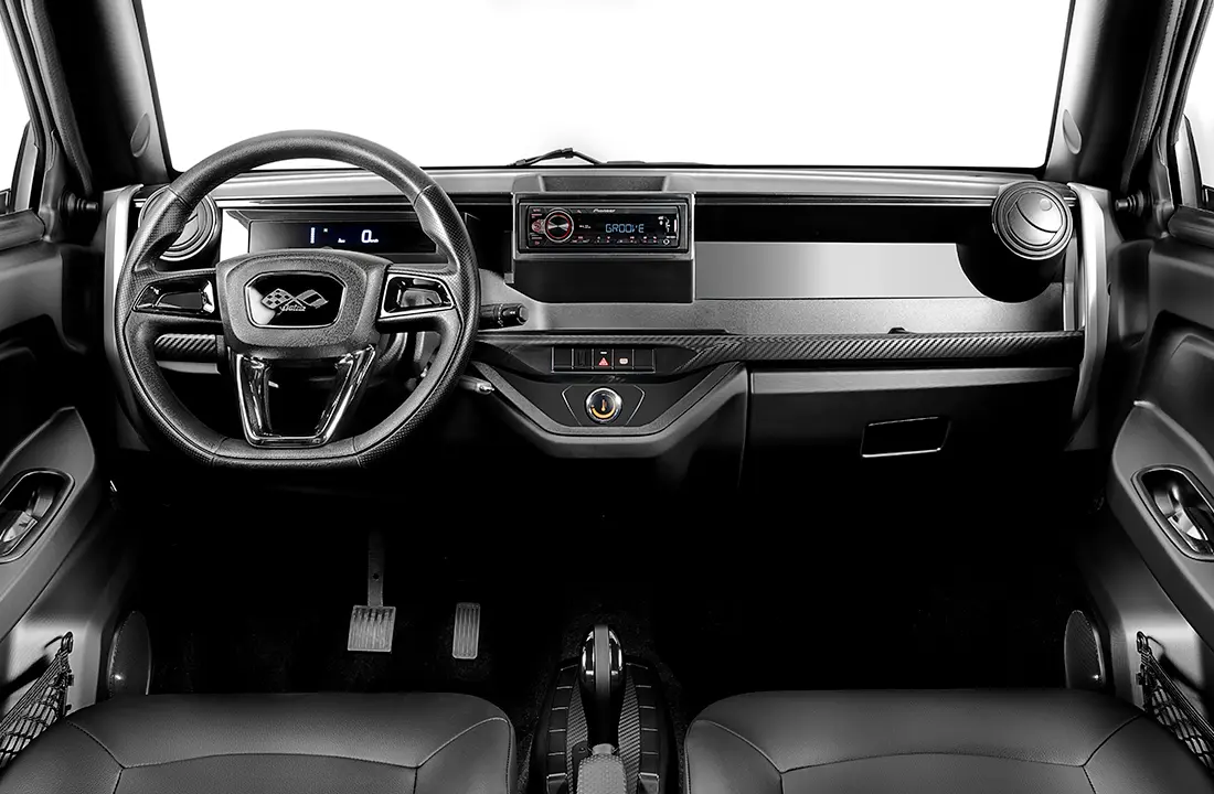 Entdecken Sie das Vergnügen des leisen, einzigartigen und intuitiven Fahrens. Exklusiv in der Welt der führerscheinfreien Fahrzeuge steht ein ECO-Modus zur Verfügung, mit dem Sie die Reichweite Ihres Fahrzeugs verlängern können.