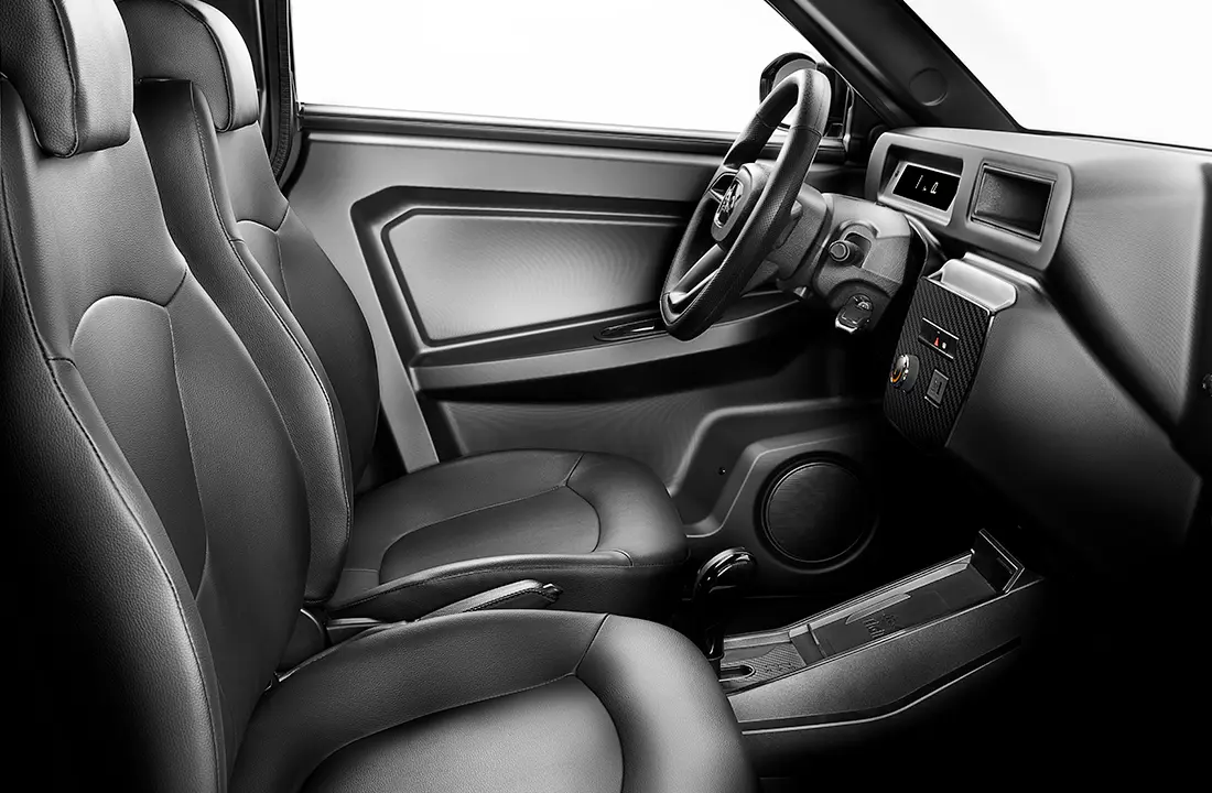 – Komfortsitze aus veganem Leder mit elfenbeinfarbenen Nähten